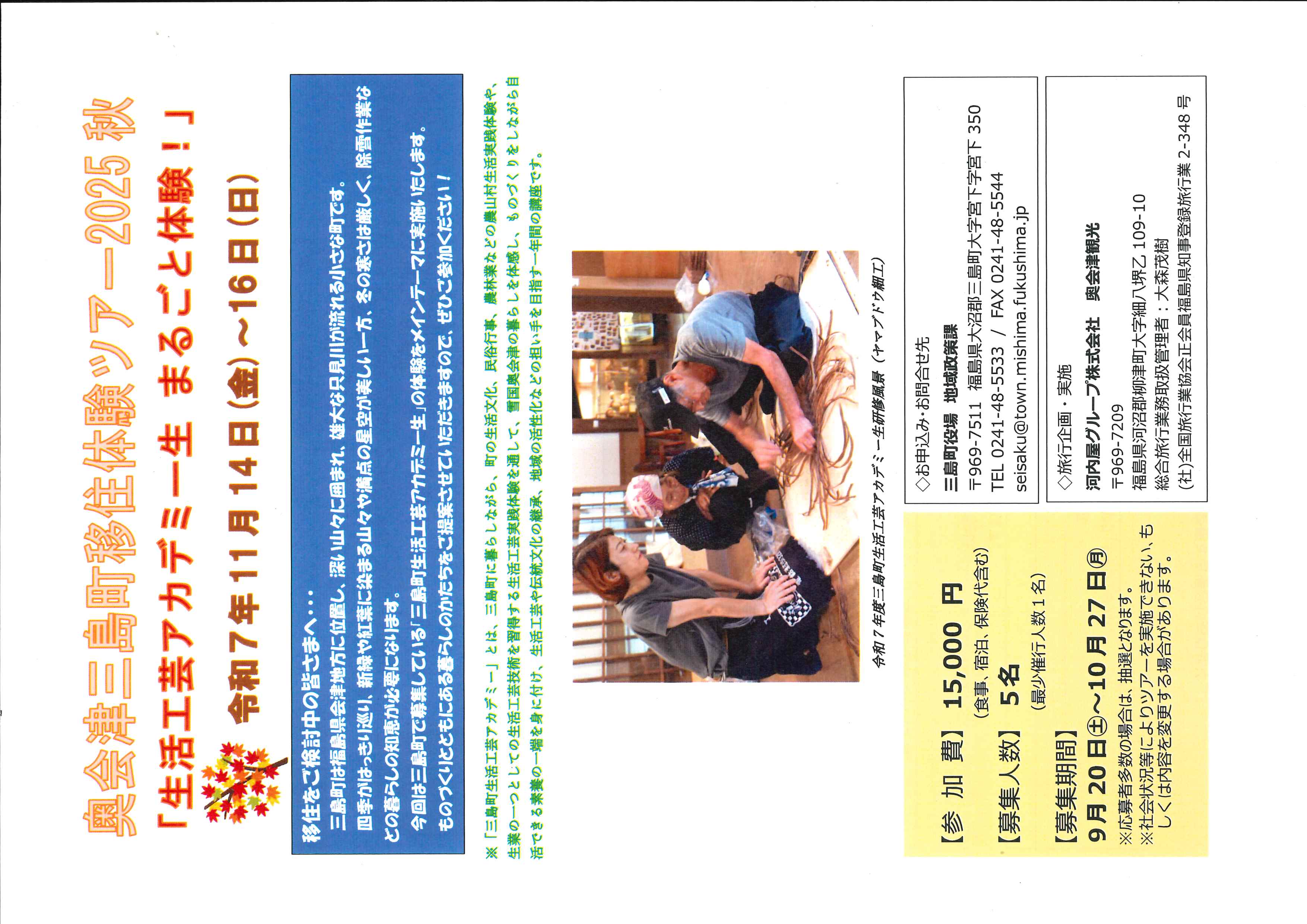 問い合わせ先:三島町役場地域政策課 電話:0241-48-5533
